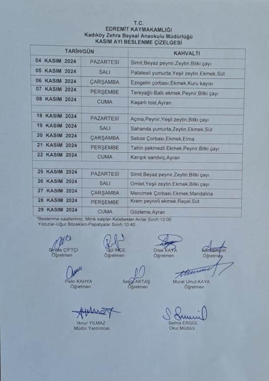 HAZİRAN AYI BESLENME LİSTEMİZ